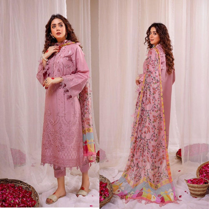 Dhanak 3PC Embroidered With Digital Printed Shawl-664