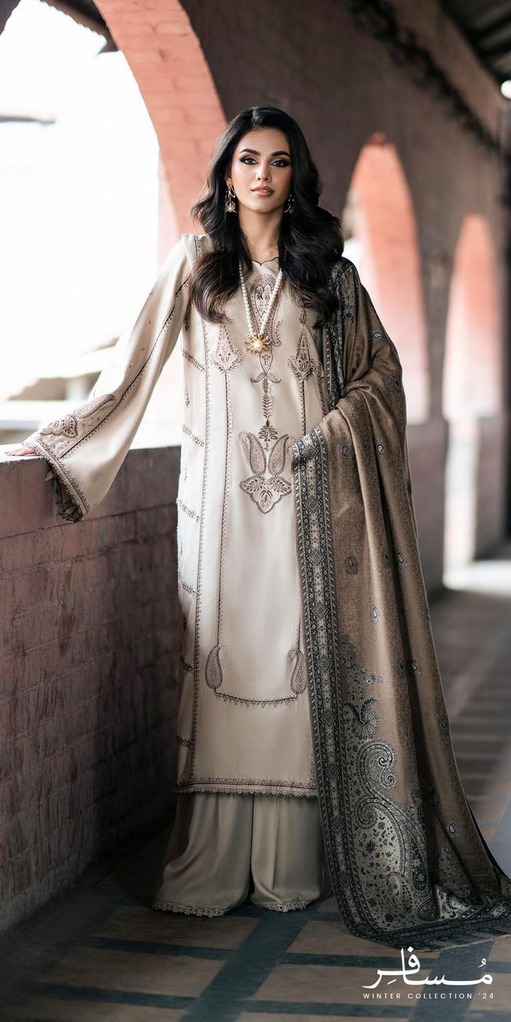 3PC Dhanak Embroidered Shirt With Digital Printed Shawl-257